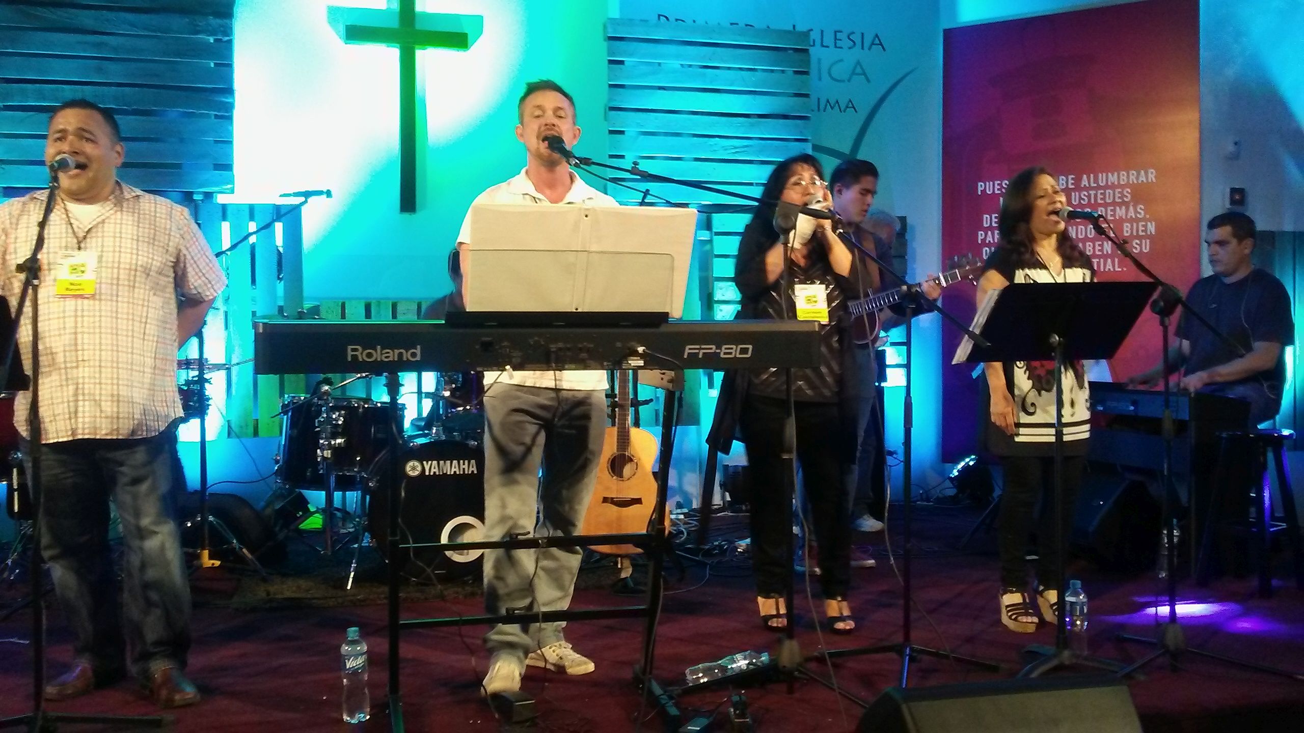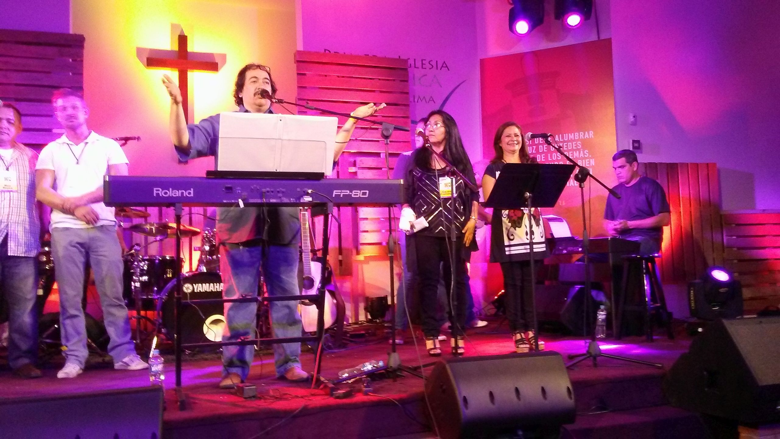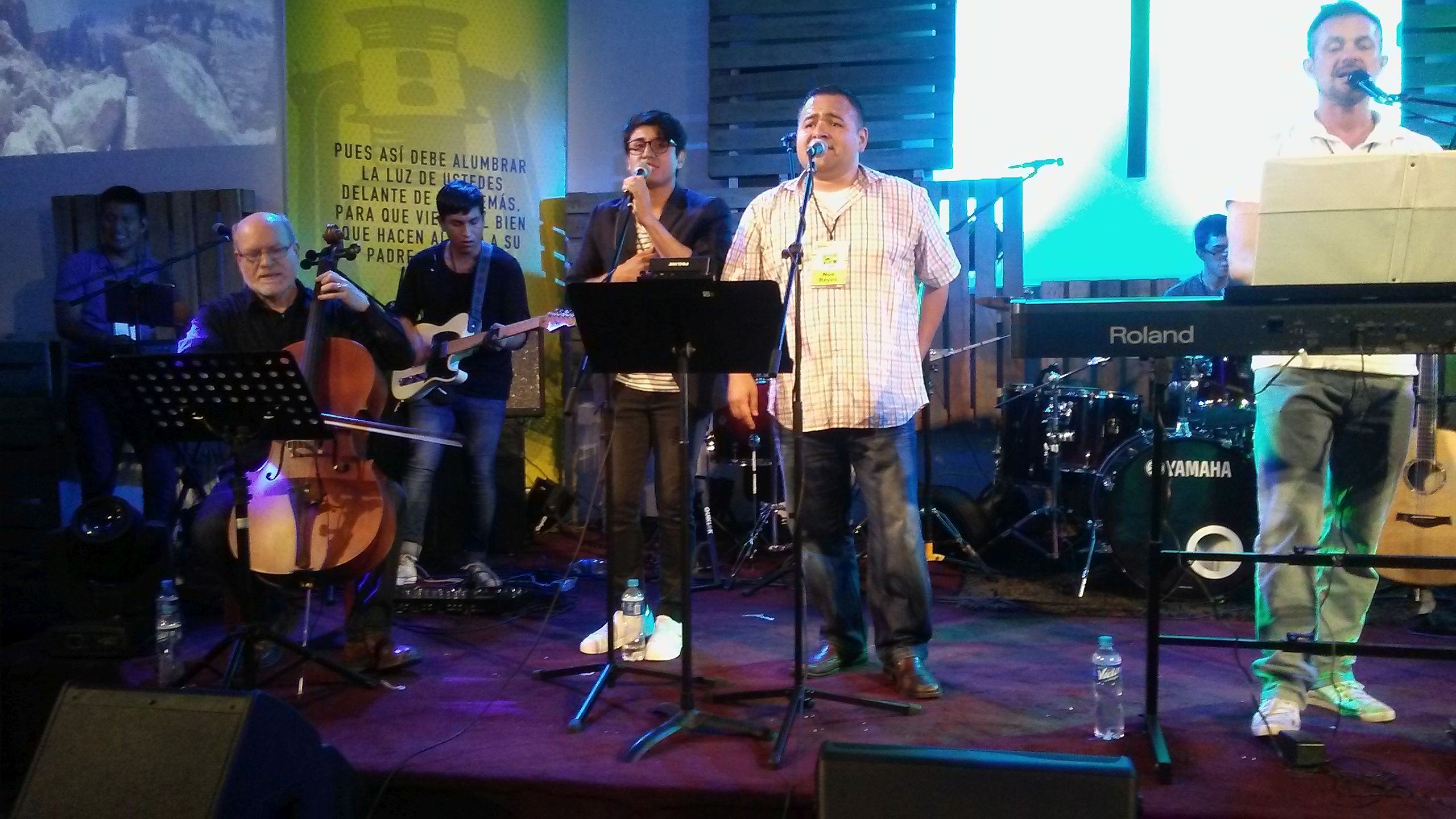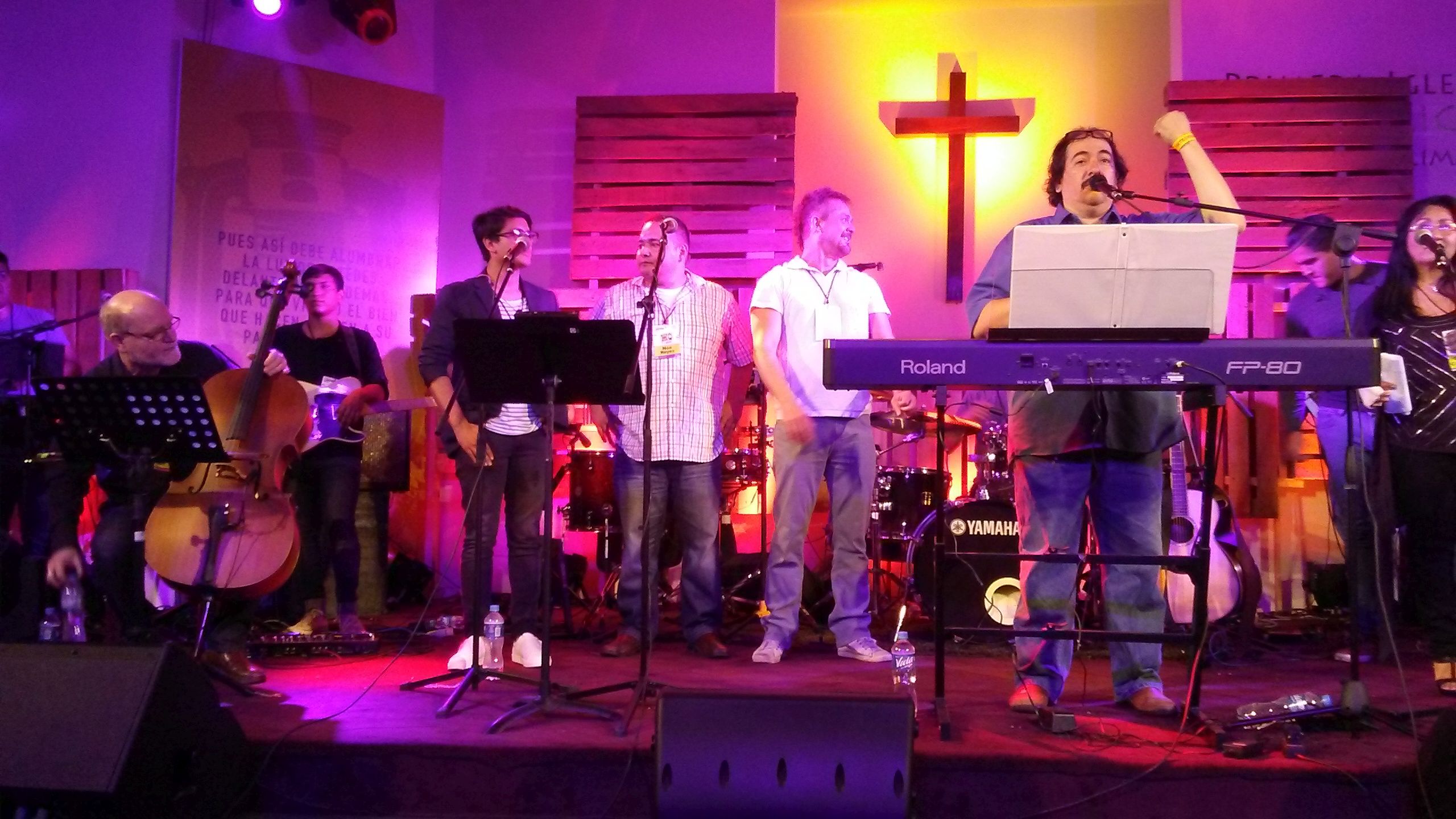 The host church for this great event was the Primera Iglesia Evangelica Bautista de Lima! Beautiful and historic church! The opening night saw more than 200 attendees come in for a powerful time of worship with the worship team from Casa Del Padre led by Paz Aguayo – amazing and a great way to start our time together. Then Paz’s parents, Guillermo and Milagro Aguayo, pastors of Casa Del Padre in Lima, shared the word together! What a great way to communicate the love and worship of Jesus as a beautiful couple! After that, the conference worship band led an extended time of worship – I joined the band on a cello that they rented for me. The cello was greatly enhanced by a nice condenser microphone (ATM350) supplied by our friends at Audio-Technica so the week went well that way! Though I ended up breaking two D strings for some reason! Ha!